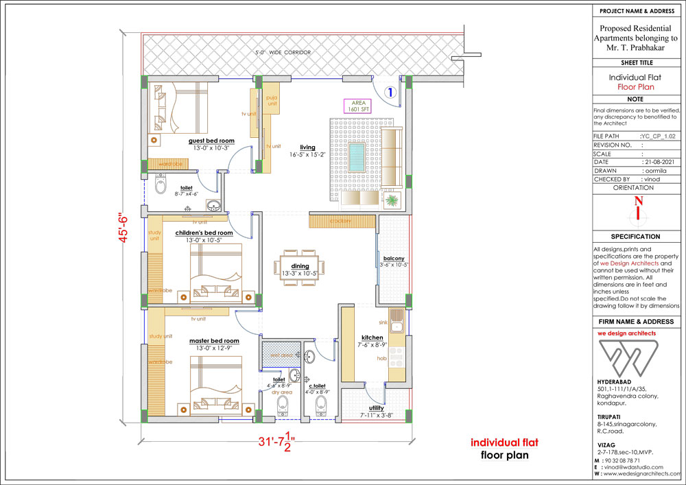 | Flooring | vitrified tiles for living, dinning, and ceramic tiles for toilets utility |